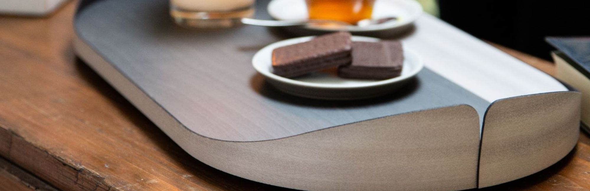 Through Portofino, Lignis reinterprets the classic rectangular format of table mats, softening the lines in a sinuous movement. The small coloured band in contrast with the natural oak reminds of the colours of a magic bay on the sea, elegant meeting between man and nature: the blue of the sea, the green of the marine pines, the brick red of the houses and the brown of the rocks. The technology of real flexible wood makes the table mats soft not only in design, but also to the touch.