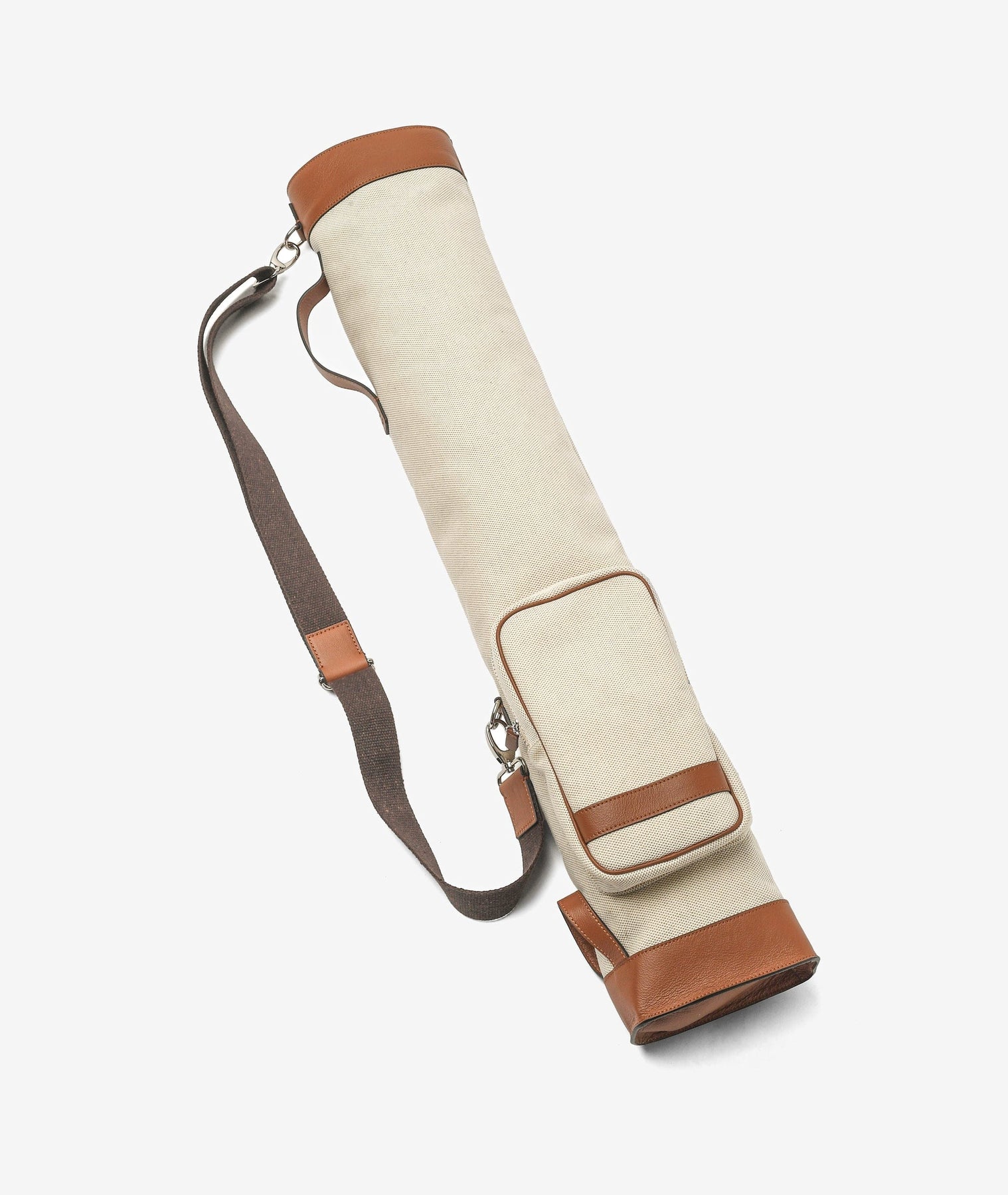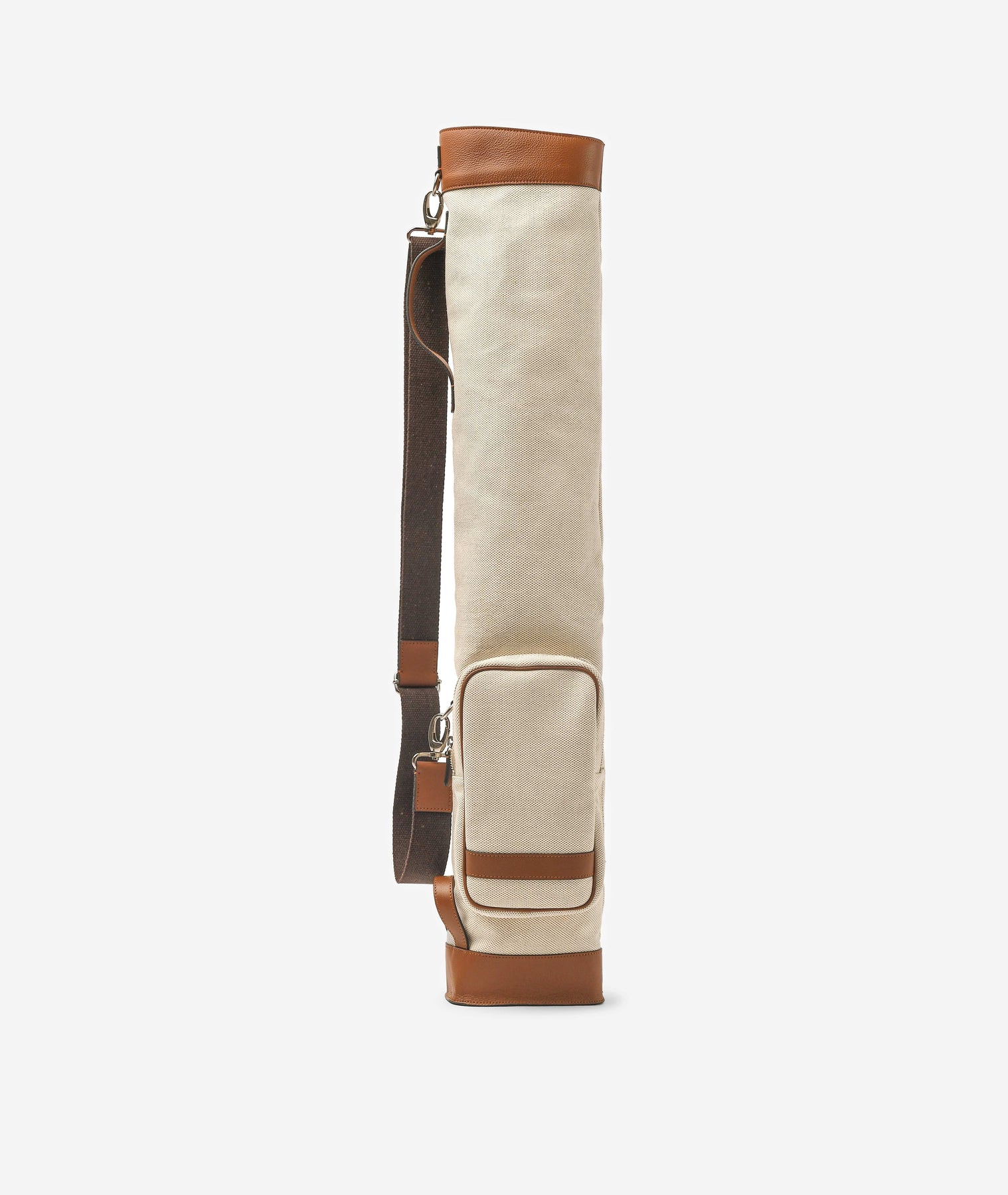 Made from durable Panamone canvas, the bag offers lightweight structure and exceptional strength, perfect for both casual and professional use. Its tan leather trim and hand-finished details create a sober yet distinguished aesthetic, ideal for golfers who value sophistication on and off the course.