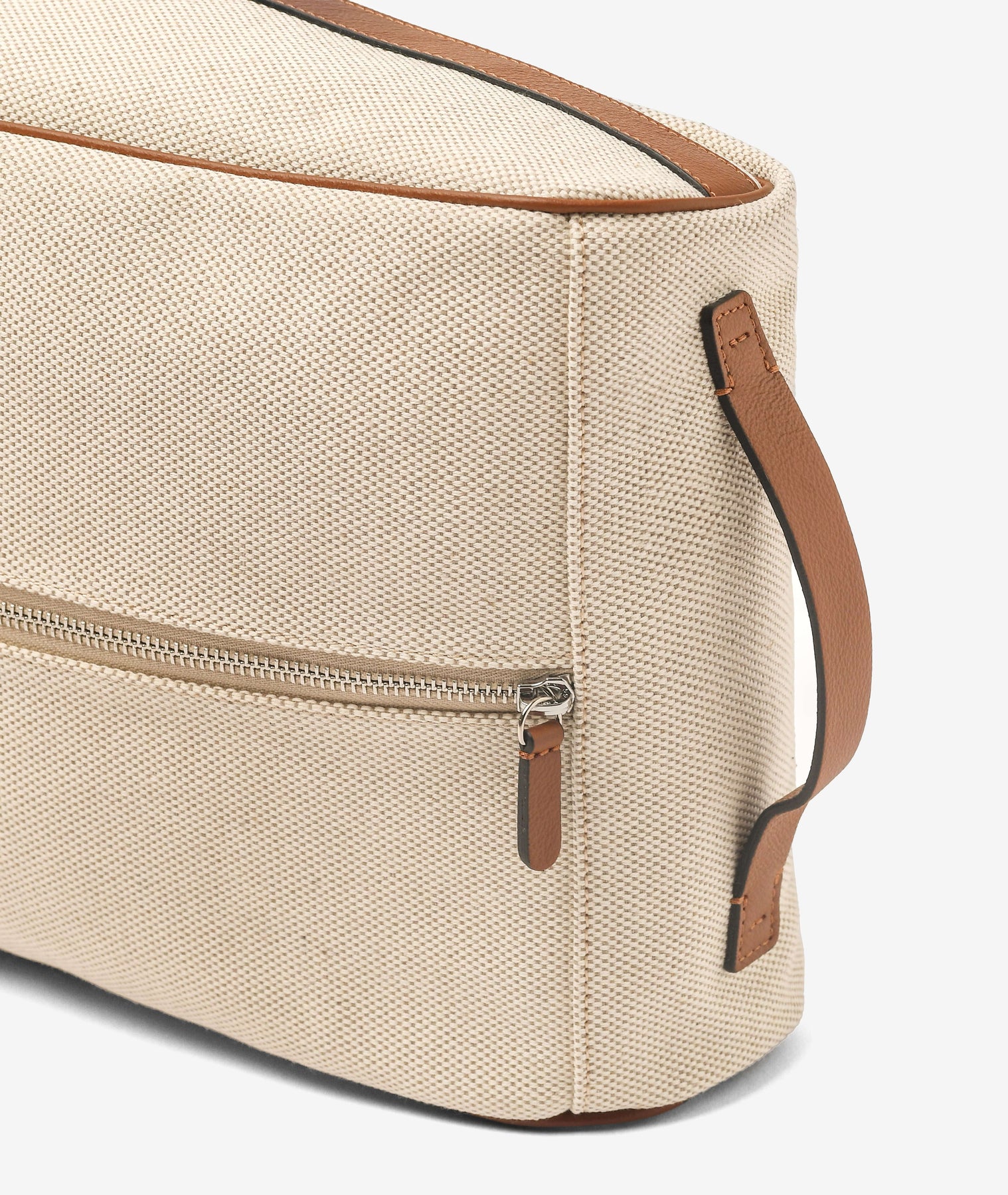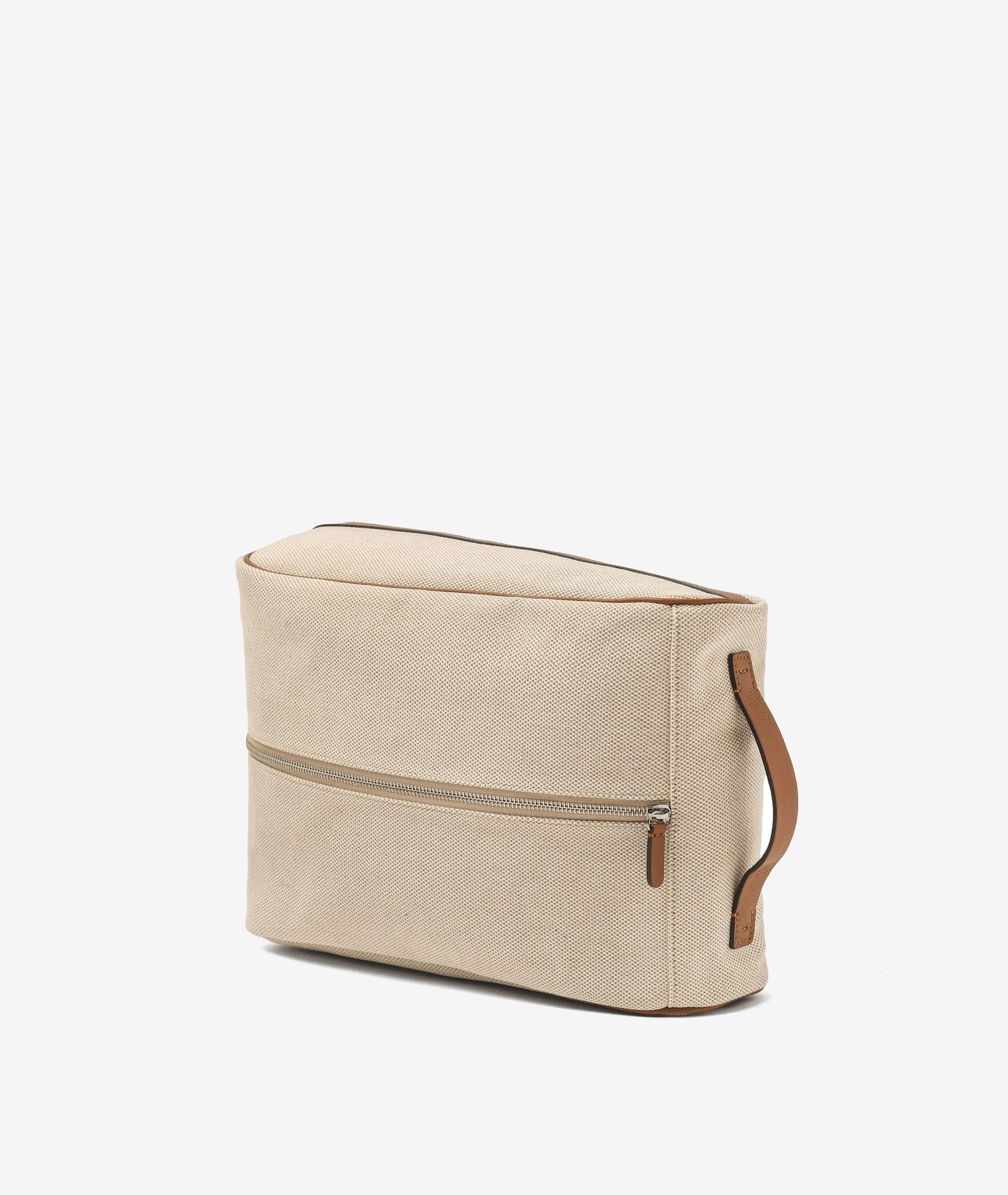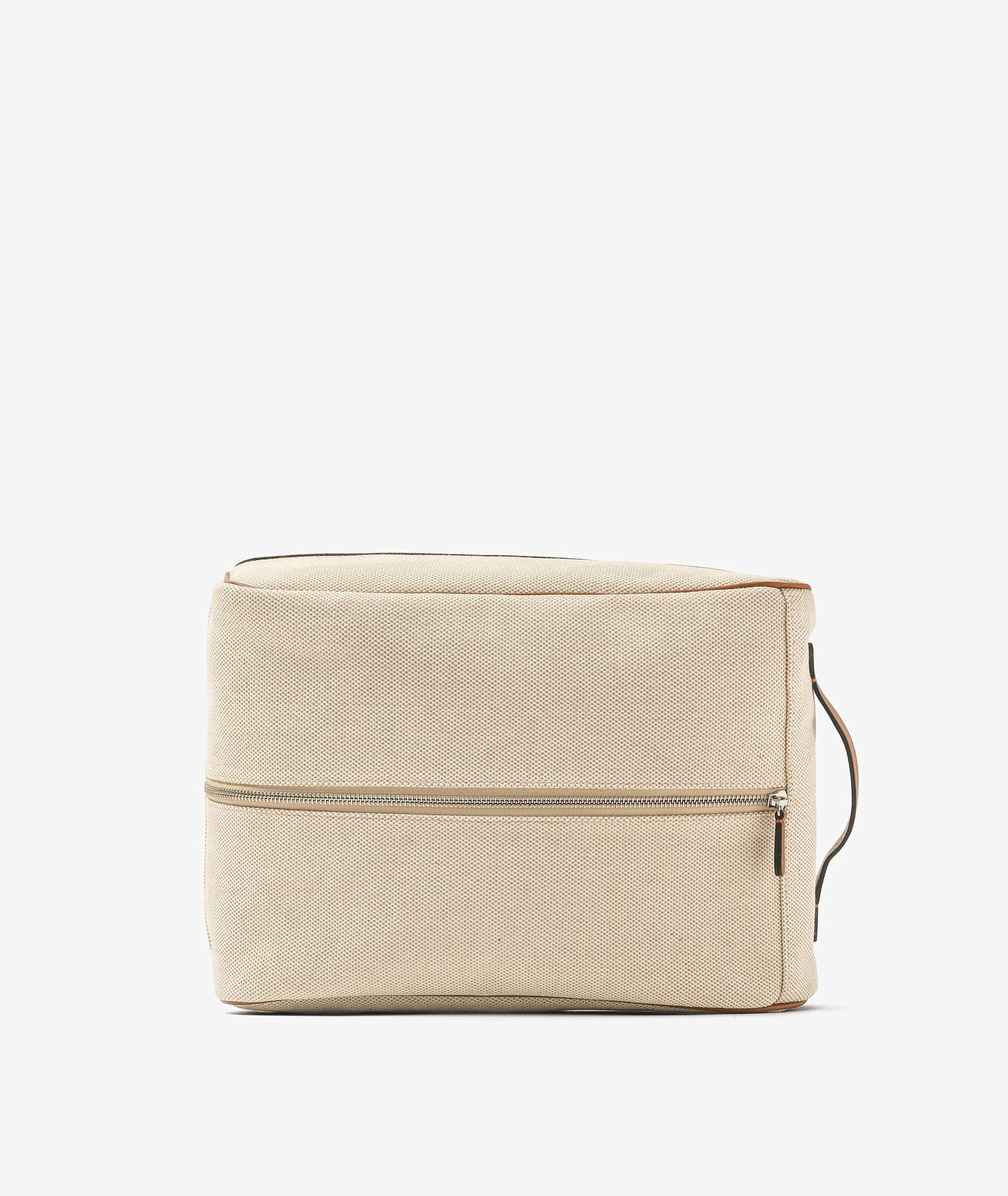 The two-way zip and the practical shell opening allow convenient and quick access. The leather handle allows easy transport, transforming even the moment of preparation into a classy gesture.